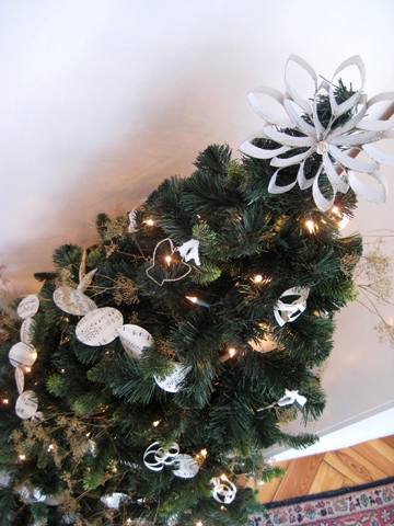 Sheet Music Star Tree Topper. All dressed in silver grey satin with an overlay of shiny silvery tulle this Christmas. This DIY tree topper Christmas star with glass glitter is a fun and easy project to do.